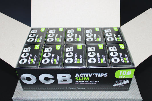 OCB Active Tips Slim à 50 „Aktivkohlefilter mit Keramikkappen" Display