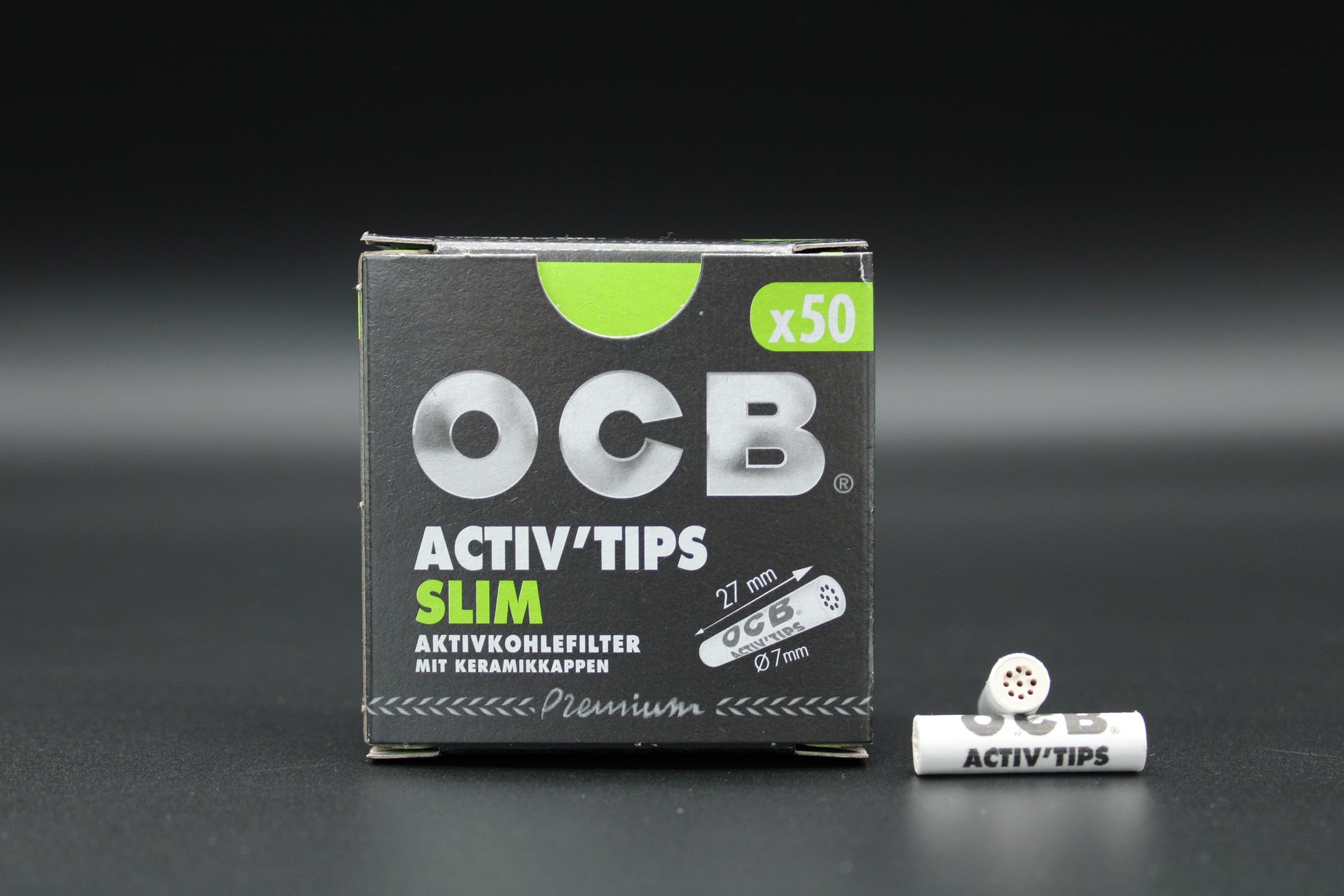 OCB Active Tips Slim à 50 „Aktivkohlefilter mit Keramikkappen" - Display